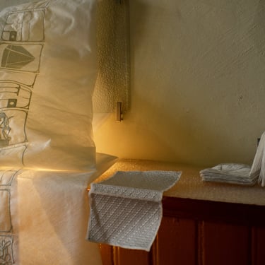 Iš „Užmaršties“ atėjo mintis sukurti tirpią knygą. Ją išaudžiau kompiuteriniu siuvinėjimu ant tekstilės pramonėje naudojamos vandenyje tirpios medžiagos.